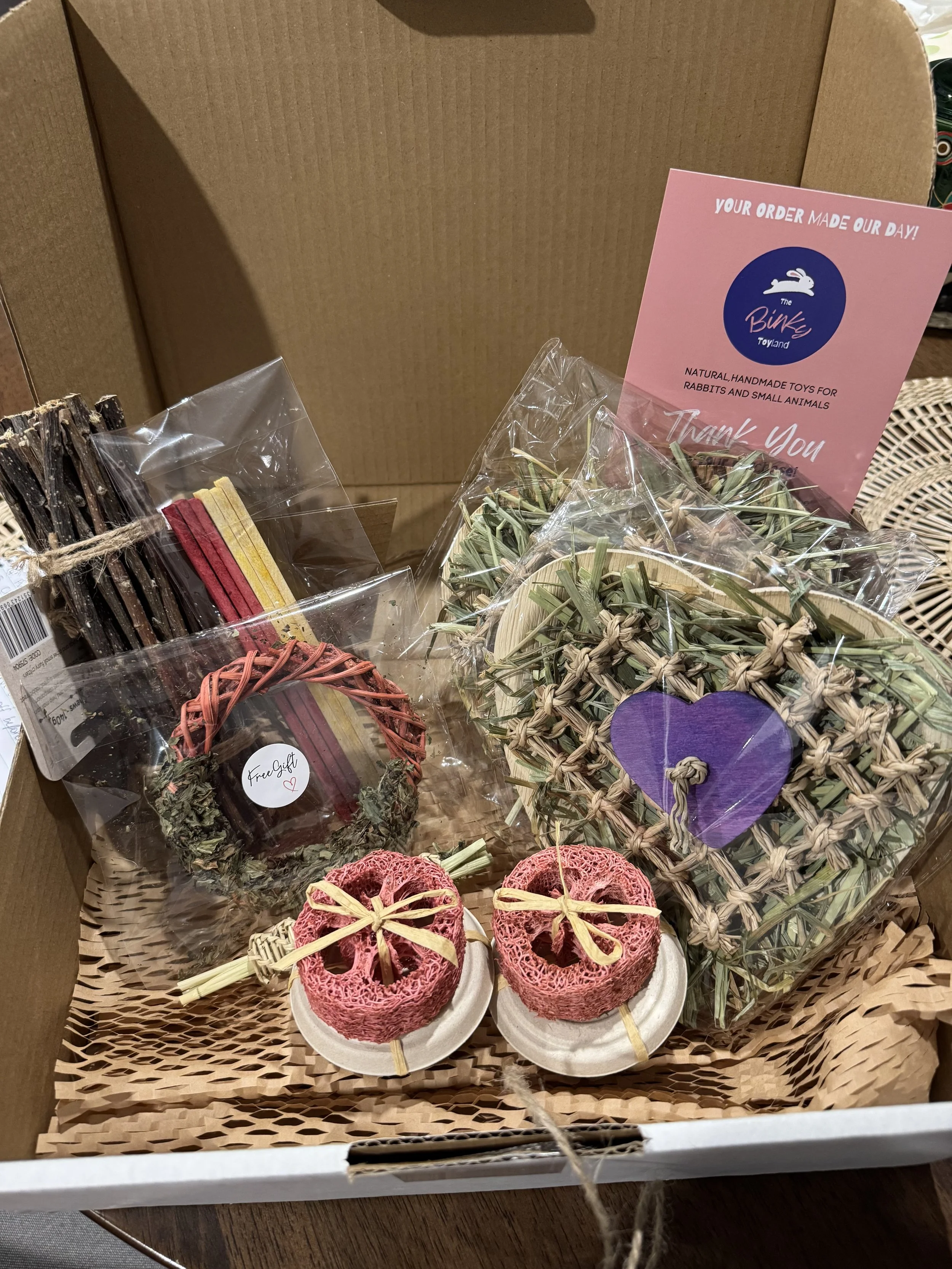 Run by Carly and a legacy to her two buns Mika and Pippin, Nibbles & Knots is a great store for your buns toys and treats! Nibbles & Knots are well-known for their festive boxes!
